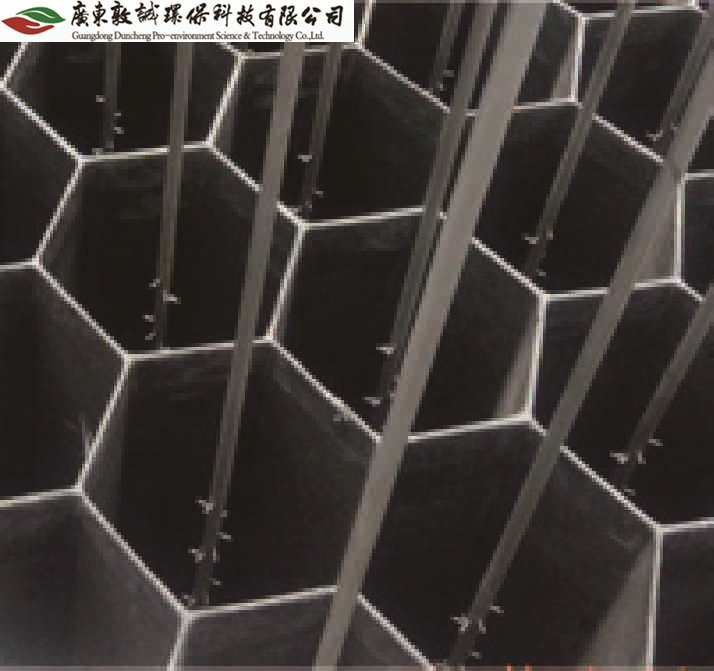 有機廢氣首先進入高效脫漆塔,其中沾性氣體和粉塵被分離出來,并且通過加藥中和有機廢氣;接著進入濕式靜電除塵裝置,在裝置電場的作用下,帶有固體顆粒與液化粉塵的污染空氣將被電離并帶上負電,在電場對離子引力和重力雙重作用下,塵埃和空氣分離,塵埃浸入陽極水膜水中,空氣從側面排出,實現除塵凈化;經過前面的兩道除油漆及除塵裝置,廢氣中的漆霧及灰塵的去除率已經達到99%以上,再進入蓄熱式催化氧化燃燒爐。催化燃燒裝置內設加熱室,啟動加熱裝置,進入內部循環,當熱氣源達到有機物的沸點時,有機物從吸附劑內跑出來,進入催化室進行催化分解成CO2和H2O,同時釋放出能力,利用釋放出的能量再進入吸附箱脫附時,加熱裝置完全停止工作,有機廢氣在催化燃燒室內維持自燃,循環進行,直至有機物完全從吸附劑內部分離,至催化室分解,吸附劑得到了再生,有機物得到催化分解處理。此項組合工藝已申請國家專利,并已獲得國家受理。