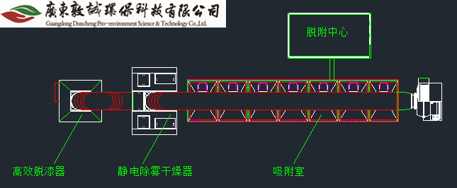 5、處理工藝:高效脫漆器+靜電除霧干燥器+濃縮吸附+催化燃燒——廢氣治理工藝;